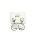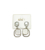 - Apuesta a lo grande por un estilo clásico con este gran par de aretes en forma rectangular de piedra blanca en estilo doble, rodeado de piedras brillantes.